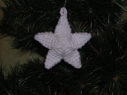 This pretty little star ornament will look great on your Christmas tree or anywhere around you house. It is stuffed in the center and the arms of the star are flat. It is kid- and pet-poof and washable. It is made with scraps of worsted weight yarn.