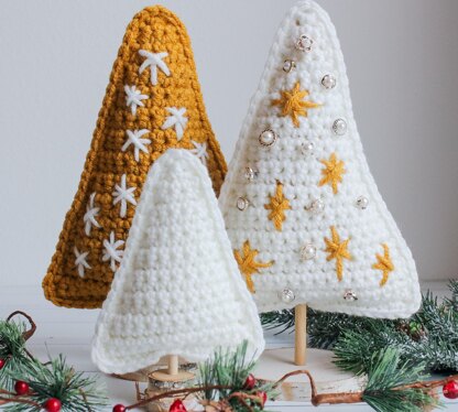 Customize the decorations – embroider stars, add decorative buttons or you can even leave as a simple undecorated tree. So many different options! Every tree can be different. A great way to use up small amounts of yarn and easily coordinate to your holiday decorating color scheme.