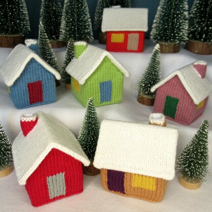 The 21-page PDF includes written knitting pattern instructions, printable outlines of the cardstock pieces (and dimensions to copy if you don't have a printer), charts for the optional duplicate stitch numbers, written instructions and 90 photos illustrating how to construct the cardstock boxes, the knitted pieces, how to attach them to each other and how to make the houses into decorations.