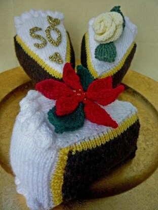Includes pattern for slice of fruit cake with marzipan and icing, including piped icing.