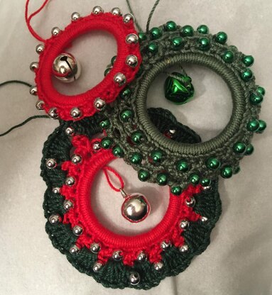 This is a pattern for 3 christmas tree decorations- wreaths.