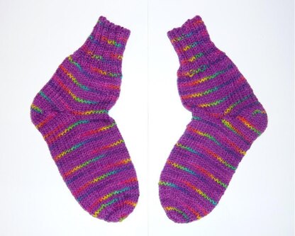 It is a simple pattern knitted top down (singly or two at a time is up to you) with an easy short row heel and simple round toe. This allows you to sit back and knit your hand dyed yarn, watching patterns, colours and pooling emerge as you go. You don't need to worry about wraps or picking up stitches and there are no fancy stitches or patterns to compete with the beauty of your chosen yarn.