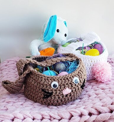 Pattern Notes You can crochet the eyes and sew them on if you’d rather not use plastic ones. Pattern is in American terminology The yarn I used is Sprighty Acrylic Super Bulky Basket measures 9" across the bottom and 6" tall not counting the handle