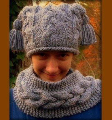 "Chunky Cable Trio" consists of directions for a hat, cowl and scarf to fit an adult or teenager. The pattern works up very quickly, and the cables keep you interested. I loved making it in Plymouth Encore Chunky, but you choose your own favorite Chunky yarn!