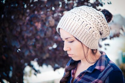 This is a PDF crochet pattern for a chunky textured slouch hat in 5 sizes. With a knit-look ribbing and a slouchy fit, this style looks great on everyone!