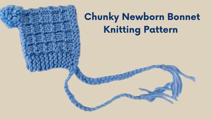 A quick knit baby bonnet made in chunky thickness yarn.