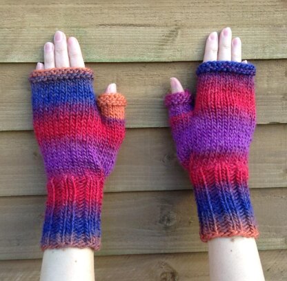 This is my Go To pattern for fingerless gloves: you can use it as a basis for more intricate designs with various wrist lengths, add cables or use a different stitch and different colours. Knit these in the round to avoid seams so they will fit snugly on your hands.