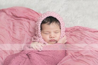 This is a PDF crochet pattern for a chunky textured baby bonnet in five sizes.