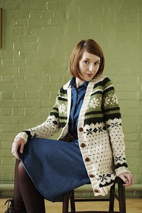 This is a fresh and fashionable new take on the classic winter cardigan! The deep V-neck is very figure-flattering and the button and pattern below the bust accentuate the waist beautifully. Long and warm, in super-trendy spring colours, this chunky snowflake cardigan is the perfect solution to all your winter/spring wardrobe woes!