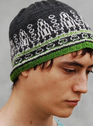 This is a pattern for a snug hat, knit in the round, from the bottom up, using stranded technique. You may need to change needle sizes between the stranded work and the solid stockinette st, as some knitters knit more tightly in colourwork. Primo Fingering is a light weight yarn, you may easily adjust size by increasing yarn weight; Traveler Sport is a fine choice to make a larger hat.