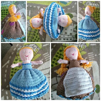 This is a lovely crochet doll pattern perfect for story telling! 2 dolls in one! Flip over poor raggy Cinderella's skirt to make the doll into the beautiful princess ready for the ball!