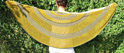 Circleville is a half circle shawl with alternating sections of striped garter stitch and an easy lace pattern. The shawl grows in size with simple yarn over increase rows.