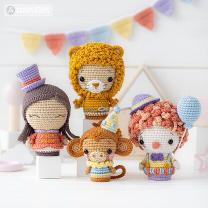Lion Tamer: milky white (105), leftover of light red (408), sand (404), gold (249), pale red (427), purple (422), dark brown (161)