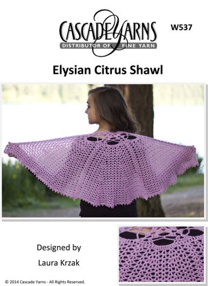 Citrus Shawl in Cascade Elysian - W537 ist eine Kostenlos Anleitung zum Crochet von Cascade Yarns, die als Herunterladbares PDF in den folgenden Sprachen verfügbar ist: Englisch. Besonders geeignet ist sie für alle, deren Können bei Fortgeschritten einzustufen ist. Probiere sie noch heute aus und kreiere dein nächstes Meisterwerk!