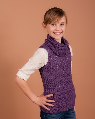 The Calquato Vest is a cowl neck bottom up construction vest that is a great match over a t-shirt or button up shirt. Made with bulky yarn this is a suitable project for the advance beginner crocheter. The yarn choice allows this pattern to be worked up quickly. The front pocket detail adds a sporty touch to the vest.