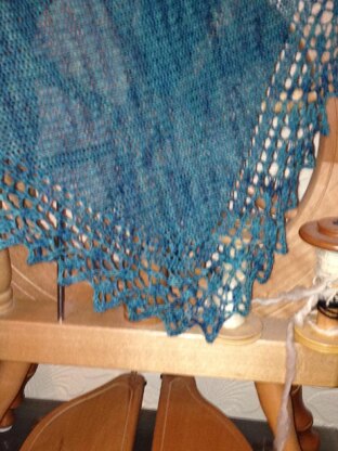 This is a sideways knitted shawl, with a lace border knitted as you go, on a stocking stitch main section. The Clara shawl can be knitted in either laceweight or 4ply.