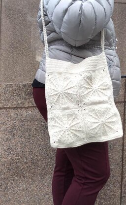 A neutral, undyed yarn and textured motifs combine to make a tote that pairs with any outfit.
