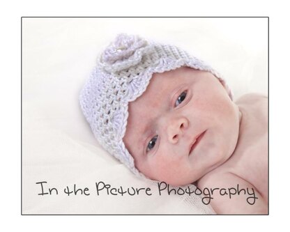 This gorgeous little cloche hat is knitted in a soft, silky yarn. It would make a perfect new baby gift! The main stitch is half-treble crochet (UK terms).