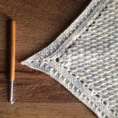 Size: 37cm/14.5” x 97cm/38” after blocking, easily adjusted to make a full size shawl (more yarn required to increase the size). Skill level: Adventurous beginners up. The written pattern includes a link that points to online crochet tips and tutorials, including the techniques and stitches used in this pattern. Yarn: Eden Cottage Yarns Carlisle Fingering, 100g/400m, superwash merino, 1 skein in Snowfall. Substitute your favourite sock yarn or hand dyed yarn or with a different weight of yarn. Check that you have 400m of your chosen yarn and an appropriately sized hook. Hook size: 3mm Construction: Worked back and forth in rows from the bottom up to create a triangle, finished with a border worked all the way around.