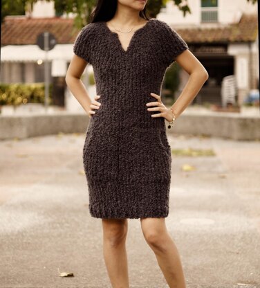 Cloudspun Dress is a close fitting dress that keeps you warm in the cooler months. It comes with optional pockets. The pockets are made at the same time as the dress and require very little finishing. It does not use any short rows. This pattern includes plenty of photo and video tutorials. Cloudspun Dress is graded with inclusive sizing in mind, designed to fit actual bust sizes from 76 cm / 30 inches to 168 cm / 66 inches. Measurements are given in both cm and inches. The sample was knit in Urth Yarns Lanalpaca. A substitute yarn is shown below.
