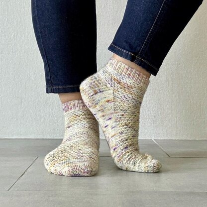 The socks are easy to work from fully written-out directions with stitch counts, as well as a schematic and a video tutorial.