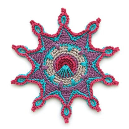 This PDF crochet pattern is for a coaster or motif with a diameter of approx. 16.3 cm / 6.5 inch. I made it using mercerized cotton, sport weight, 5 ply.
