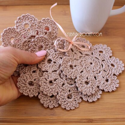 Beautiful Crochet Flower Coasters Pattern PDF.
