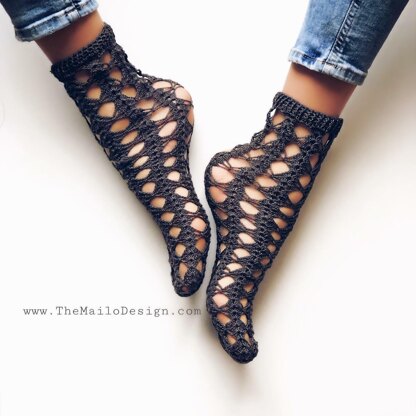 Skill level for crochet - Intermediate ( used stitches: ch, dc, hdc, Vst, shell st) The PDF Format pattern contains helpful pictures and step by step word description, total 11 pages If you have any questions about pattern, feel free to contact me, I'll do my best to help you! You will need: - Crochet Hook - 2 mm; US – 1/B; Uk – 13 - Sample made from Madame Tricote Maxi 100 gr/ 3.5 oz; 565 m/ 617 yds - For short socks you will need aprox 50 gr/1.7oz - Elastic thread, sewing needle (but notnecessary, only if you want to make cuff of the sock more elastic) Size: Adjustable to any adult size All pictures/patterns copyright by TheMailoDesign@ The use of pictures/patterns for resale purposes is prohibited Wish you nice shopping at my store! TheMailoDesign