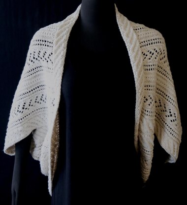 I love to take simple shapes and turn them into more complicated-looking styles. This Cocoon Cardigan is knit in one piece as a rectangle, then folded on itself and sewn together to create a circular-shaped, open-front cardigan. The Remix yarn, made from recycled fibers, gives it a slightly rustic look that would be fantastic to wear to a casual outdoor party!