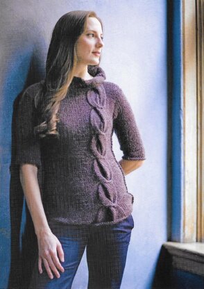 This twisted cable pullover reminds me of our lives:full of twists and turns, as we fall and rise, struggle and evolve to finally emerge renewed and stronger. The yarn I used has a silky texture, subtle colors, and, for me, a sense of comfort, so I was inspired to create something familiar yet new, like an old cable with a new twist. To make this dramatic cable, you turn the knitting 180 degrees before you knit the stitches from the cable needles. Knit continuously in reverse stockinette stitch, the pullover has a classic fit with a funnel neck and elbow-length sleeves.