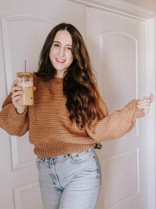 This cozy Coffee Chat sweater features a slight crop, crew neckline, exaggerated rib hem and a simple, repeatable stitch pattern for some relaxing & meditative stitching. The fit is intended to be oversized in both the body and sleeves, for a cozy, lived-in wearable blanket kind of vibe (my favorite kind of sweater)... with approx. 7" of positive ease. If you'd like your sweater to be more fitted & less oversized, simply pick the size that is closer to your actual Chest Measurements.