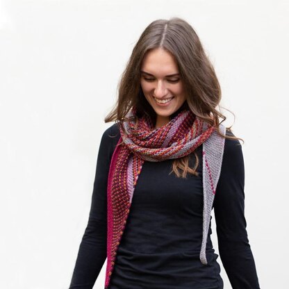 Have fun watching your colours mix together as you knit! In the original shawl, the first colour is a light grey, colours two, three and five make a gradient and colour four adds some contrast. But you can easily deviate from this scheme and make your own colourful visions come true!