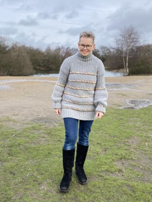 One of trends - More Emphasis on Knitting What You Have! Lots of people are reducing consuming. If you have some yarn stash, this pattern is exactly what you need! Use any oddments you have to form colourful braids (cords). Not only will you be the proud owner of a one-off unique design garment, but you will also have reduced the amount of yarn hiding in every cupboard (because we’ve all done it!!). Even it looks complicated it is a great way of knitting without learning a new technique. The braid (cord) is formed on the reverse stockinette stitch side of the knitting. Before and between the braid rows, work as many reverse stockinette rows as you like. The Colourful Braids Sweater features a high neck, dropped shoulders, long sleeves, which balloon into rolled cuffs. Team the sweater with biker boots, leggings or simple jeans to complete the look. Follow the pattern instructions for longer length and you will make a warm dress for cold season.