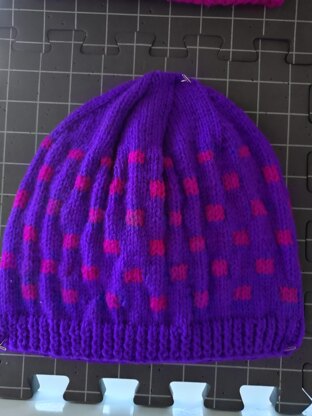 A design to bring a bit of colour to a simple hat. It's knitted in DK yarn, and is quick and easy to knit.