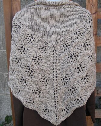 I design this shawl when I started thinking about what I thought “Auntie Em” of the Wizard of Oz would wear. I decided to use chunky yarn thinking how comfortable it would look and feel on my shoulders. However, after using the chunky yarn, I then preceded to work up the shawl in dk weight yarn and in lace weight yarn. The stitch pattern is such that you can easily keep going for as long as you want. A different weight yarn a different look. The collar is also optional.