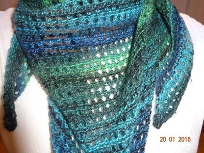 This Baktus shawl shown weighs 93 grams and uses two skeins of the linked yarn. Knit more rows for a larger shawl.