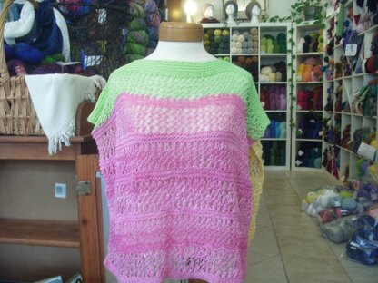 This fun summer top can be left open on the sides for a more airy feel or sewn to make it a shell. This is a very quick knit with an easy to remember pattern.