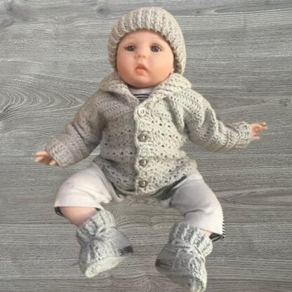 • Corbin newborn size cardigan, hat and booties set