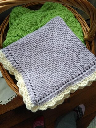 This is blankie is knit corner to corner which adapts easily to accommodate all desired sizes.