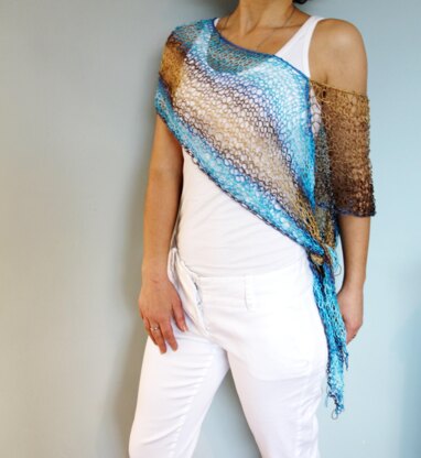 This is a perfect shoulders cover up for a cool summer evening. It is stylish and versatile, can be worn in different ways to create different looks. Convertible from a classic poncho hanging on a side, to a cape with long ends hanging at the back, a scarf or into an unique asymmetrical poncho that will knot on one side. Easy to make is the perfect project for a beginner in knitting. Knit this summer/beach poncho for yourself or as a gift for your loved one!