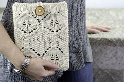 Corylus is a pretty iPad Sleeve featuring a gorgeous leaf and cable pattern that mimics the twisting branches and leaves of the Hazelnut tree.
