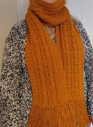 This pattern came about after we (my husband and I) suffered a devastating house fire and we had lost everything apart from a few clothes and our dogs. So crochet was the last thing on my mind as you can imagine, but as we were wandering around a store one day I saw this yarn and picked it up for no reason and with no project in mind - got home and the cosy cable scarf was born!!!