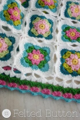 This detailed and thoroughly tested pattern includes: ~complete materials list including quantities and colors of yarns used in sample ~stitch abbreviations, notes and special stitch sections ~written instructions (standard US terms) to make the motifs including a color placement diagram to assist with layout ~join-as-you-go instructions, with additional photo-tutorial section (no need to print to complete pattern)