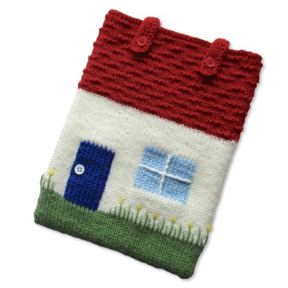 Knit a home for your tablet. This cosy case has a knitted outer and a lining to give extra protection. The doors and windows are embroidered on the case after knitting using Swiss Darning. The pattern includes charts for the decoration, so you can follow my design or customise your cosy if you prefer. The case and lining are worked in the round on the circular needle. The straps are worked flat (back and forth) on the circular needle (or use a pair of 4mm single pointed needles). Designed by Amanda Berry @fluffandfuzz, the case is knitted in acrylic DK yarn. For confident beginners and above, other techniques used include casting on, Kitchener stitch grafting, and a little seaming to finish.