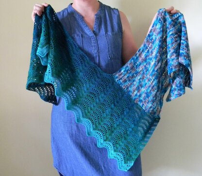 A shawl of unusual construction, Counting Waves, combines simple pattern of double crochet and a more advanced pattern of treble crochet to create waves. Soothing pattern repeat will keep your fingers busy and your mind relaxed. A variety of yarn styles and colors may be used, choose your favorite!