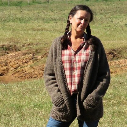 Carefree, easy style this no frills cardigan is generously sized. And did I mention the pockets? Love! Go for a walk, play with the dogs or just relax, weekend in the country. The body of this sweater is knit in one piece to the underarms. The sleeves are worked in the round, from the bottom up. The body and sleeves are joined at the underarm, with the yoke worked in one piece.
