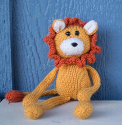 Courage the Lion is a quick knit worked in the round. Minimal seaming required! Only sew on the muzzle. Arms, legs and mane are attached in while you knit!