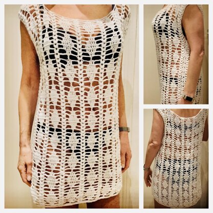 Diamonds are a girls best friend....so why not cover yourself on or off the beach with these crocheted diamonds. A lovely cover-up that will turn heads . You can make this cover up as long or short as you want. With or without sleeves. But you can also make it into a skirt/dress version for versatility. Difficult to make? NOT AT ALL.