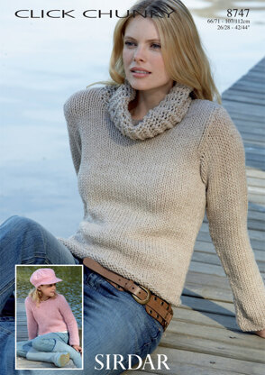 Cowl Neck and Round Neck Sweaters in Sirdar Click Chunky - 8747 - Downloadable PDF ist eine Anleitung zum Knitting von Sirdar, die als Herunterladbares PDF in den folgenden Sprachen verfügbar ist: Englisch. Besonders geeignet ist sie für alle, deren Können bei einzustufen ist. Probiere sie noch heute aus und kreiere dein nächstes Meisterwerk!