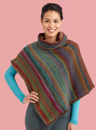 Cowl Neck Striped Poncho in Lion Brand Amazing - L10744